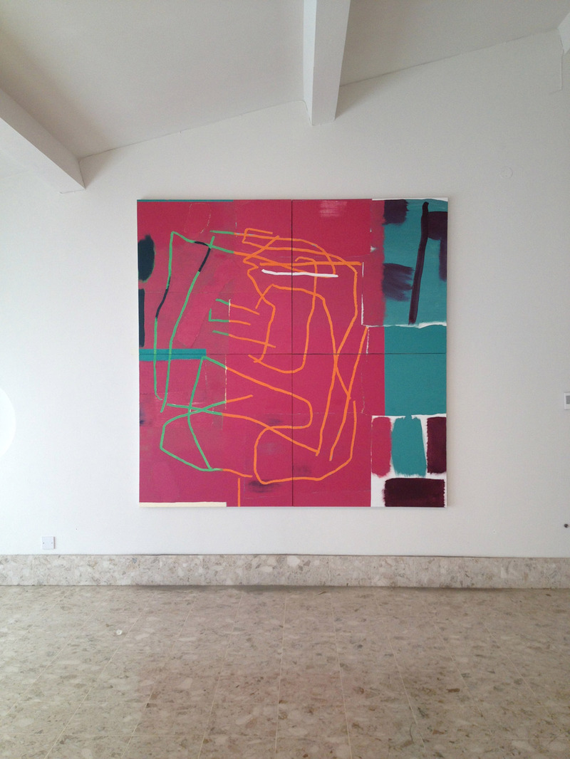 To start with one work - "JACKITIN, four sections": it has a particular significance for me. The title relates to an encounter walking along a street, a moment unexpected and bizarre, both visual and aural. A small group of people is sitting on the pavement, and I hear those words - "jack it in." A rapid notation / drawing is made, on a scrap of paper. The memory of that incident stays with me. This kind of situation and response often acts as a trigger or spur to a work, a passing moment of sensory experience that generates initial moves for a painting or drawing. In the continuing work I start with moves, acts that are both a response to previously drawn marks and to a direct intuitive working process. There is always a conflict, a duality, between formality – control and uncertainty – freedom: those issues counteracting, generating energy. The work is an evolving process with continual change and uncertainty. I am aware of an ambiguity of reference and consequent reading. In 2003 I wrote - 'The experience of a mundane object, how it inhabits consciousness – That pale violet plastic fork on the pavement in the accumulated muck by the wall. The blackbird dead on the road pounded by tyres, a flat heraldic trace'. Sources of this kind, connected to aspects of my work, relate to my need to create a sense of disturbance and the absurd. This does not always work, so there is often a kind of 'fight' going on, a need to erase, to layer over, to construct a history. These are aspects of memory conjoined with the physicality of painting, the dynamic of marks and an increasingly intense and often problematic interaction of colour. As time goes by the pressure to keep work open and exploratory continues.